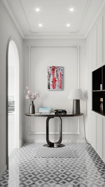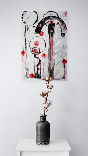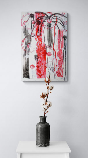Charcol and silk painting on canvas / 50x50cm / 2024 / Unique